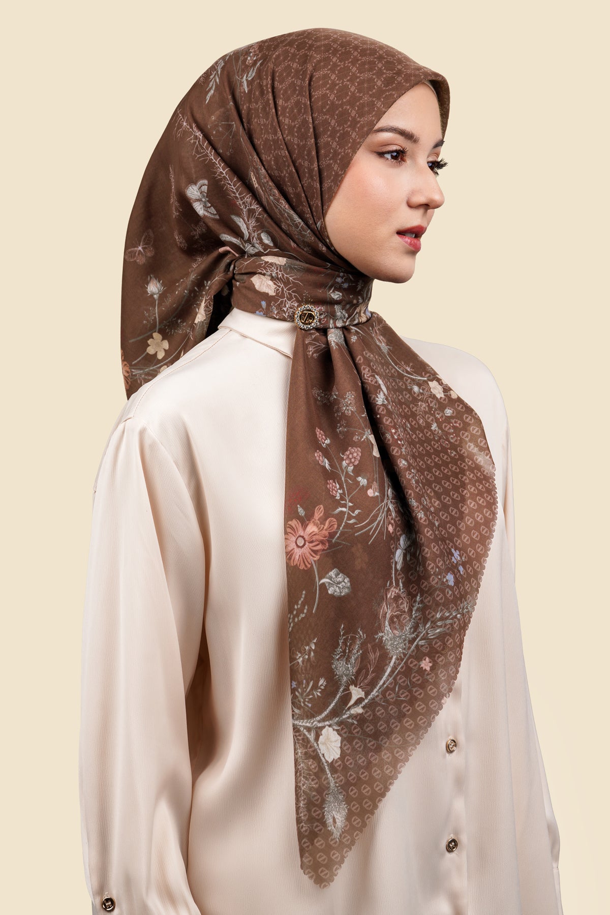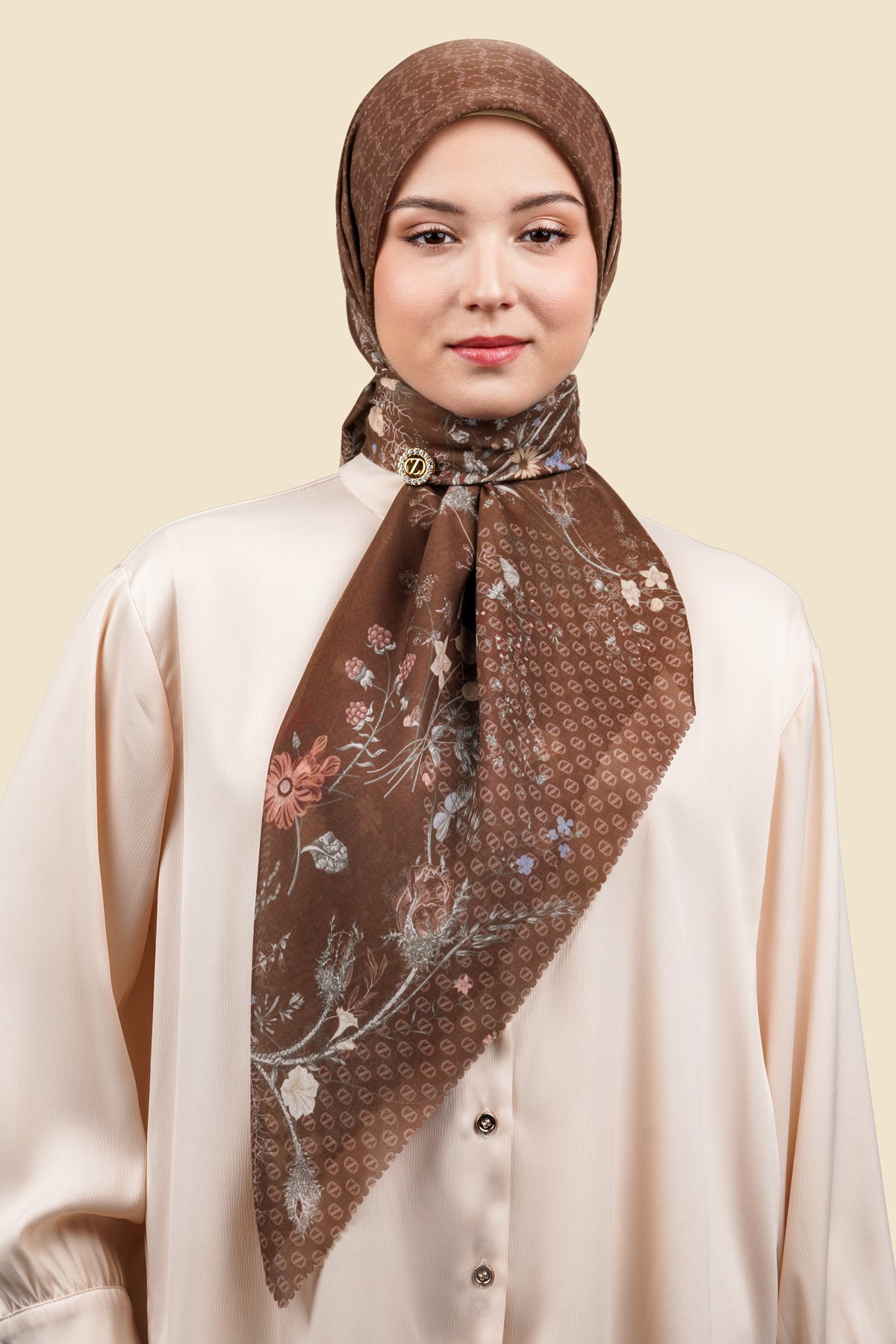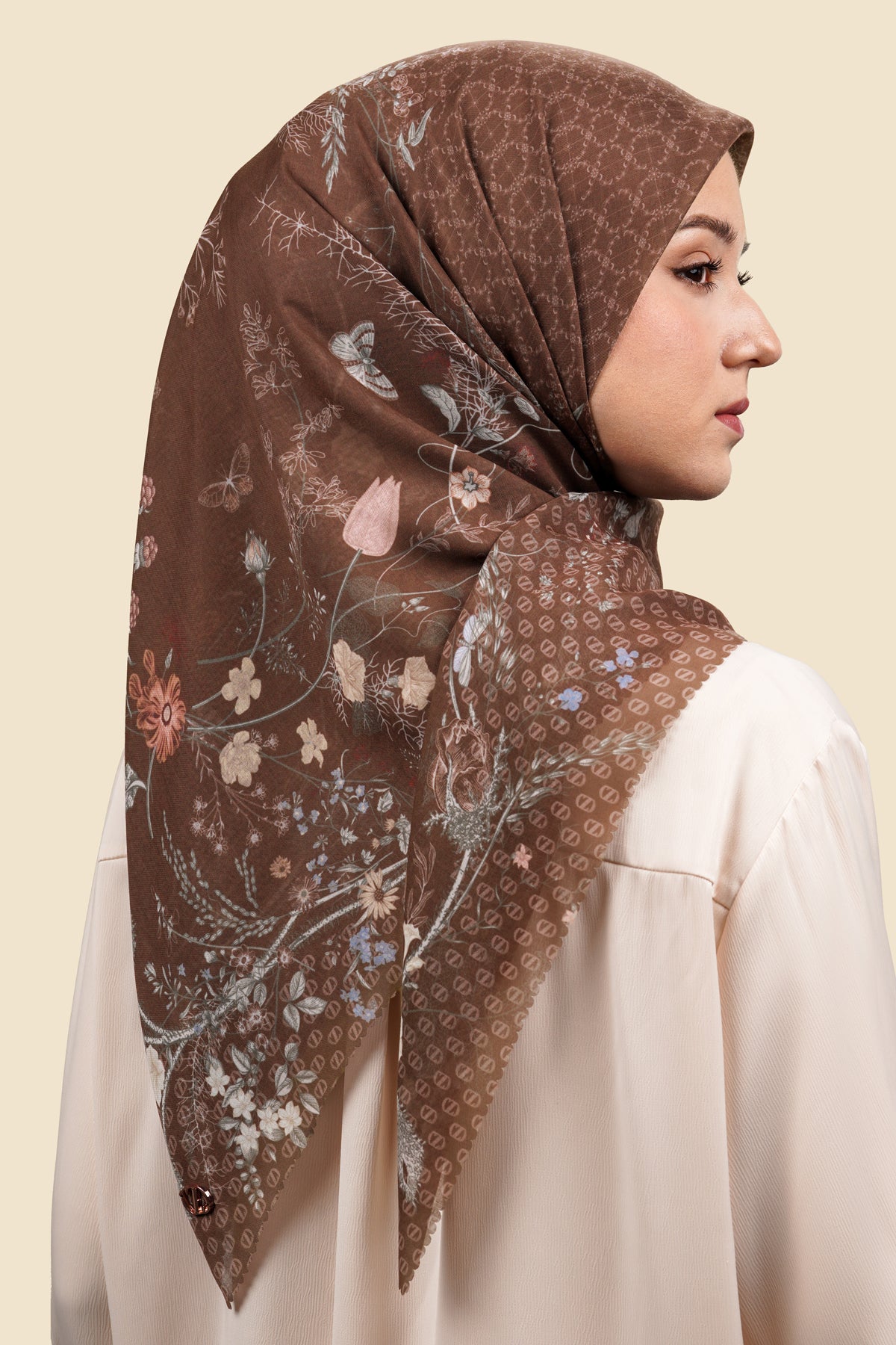 Delicate blend of nature and nostalgia, Alchemy Series captures the beauty of a soft vintage botanical world. The florals bloom in muted tones, creating a sense of quiet romance while maintaining a refined and timeless elegance. It feels like a piece of classic artistry—subtle, balanced, and effortlessly graceful. Designed for moments when you want to feel both feminine and composed, Alchemy Series is more than just a scarf. It’s a gentle expression of beauty, where every detail comes together in perfect harmony.