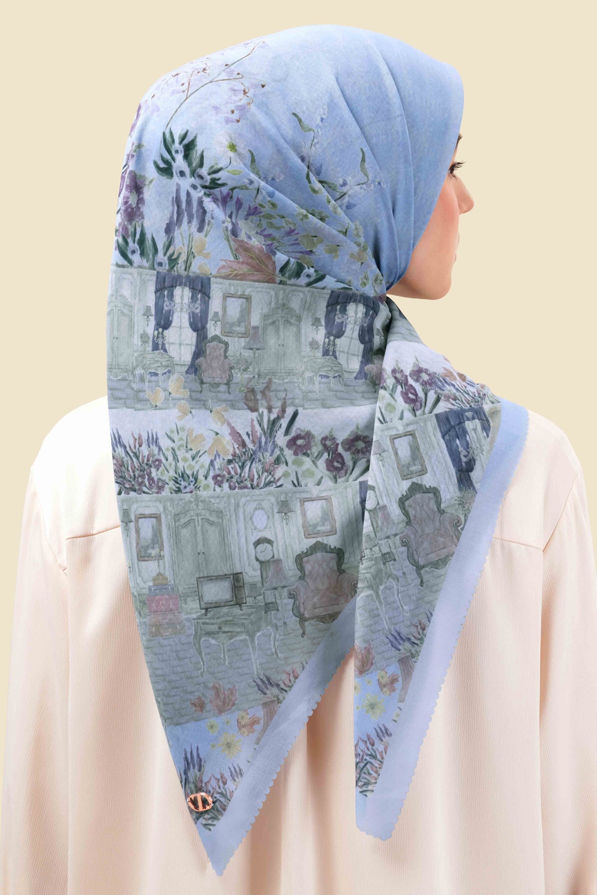The Galleries Scarf takes you on a quiet walk through a botanical art gallery, where classic architecture meets blooming wildflowers. Every part of the print feels like a canvas, blending structure and softness in a way that feels effortless. When worn, it gives the impression of carrying a small exhibition with you—subtle, elegant, and full of stories waiting to unfold. It’s a piece that brings an artistic touch to your everyday look.