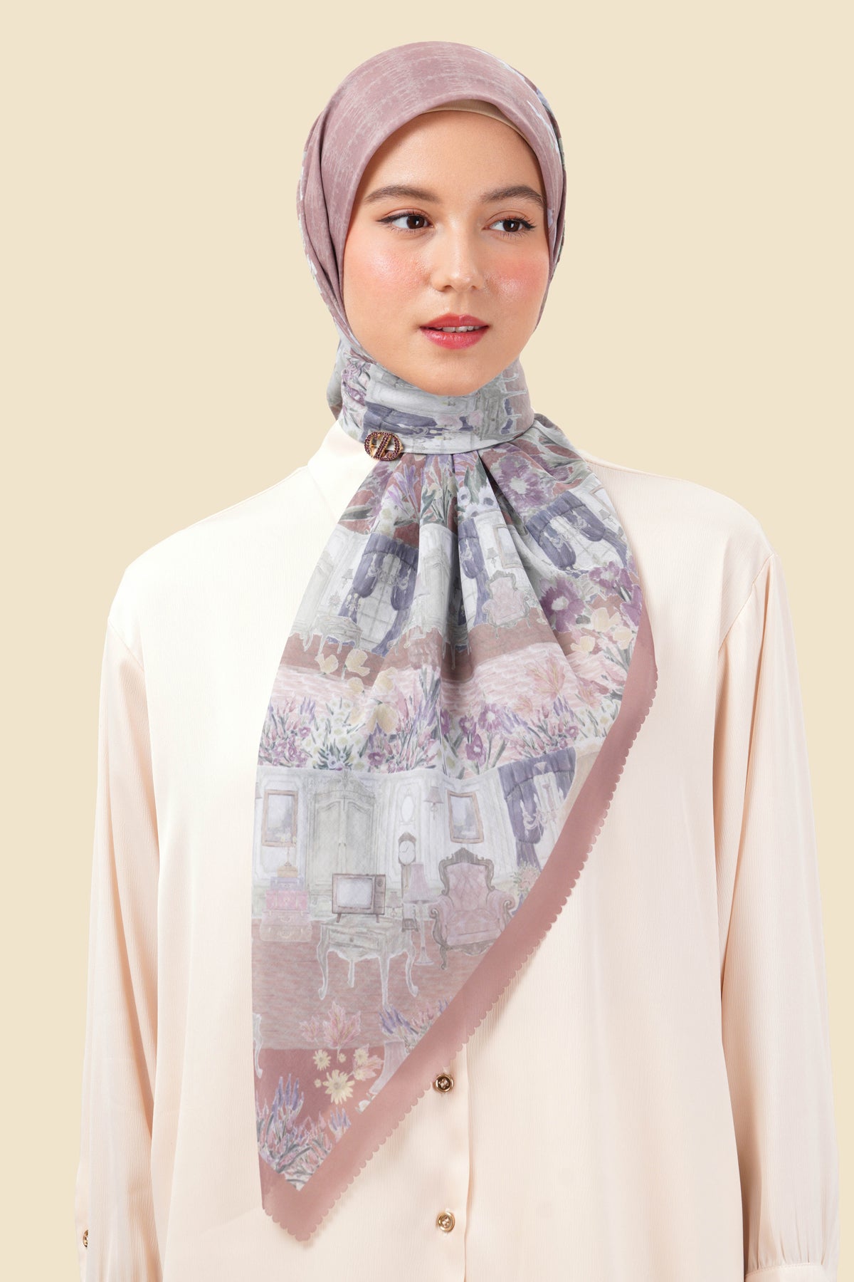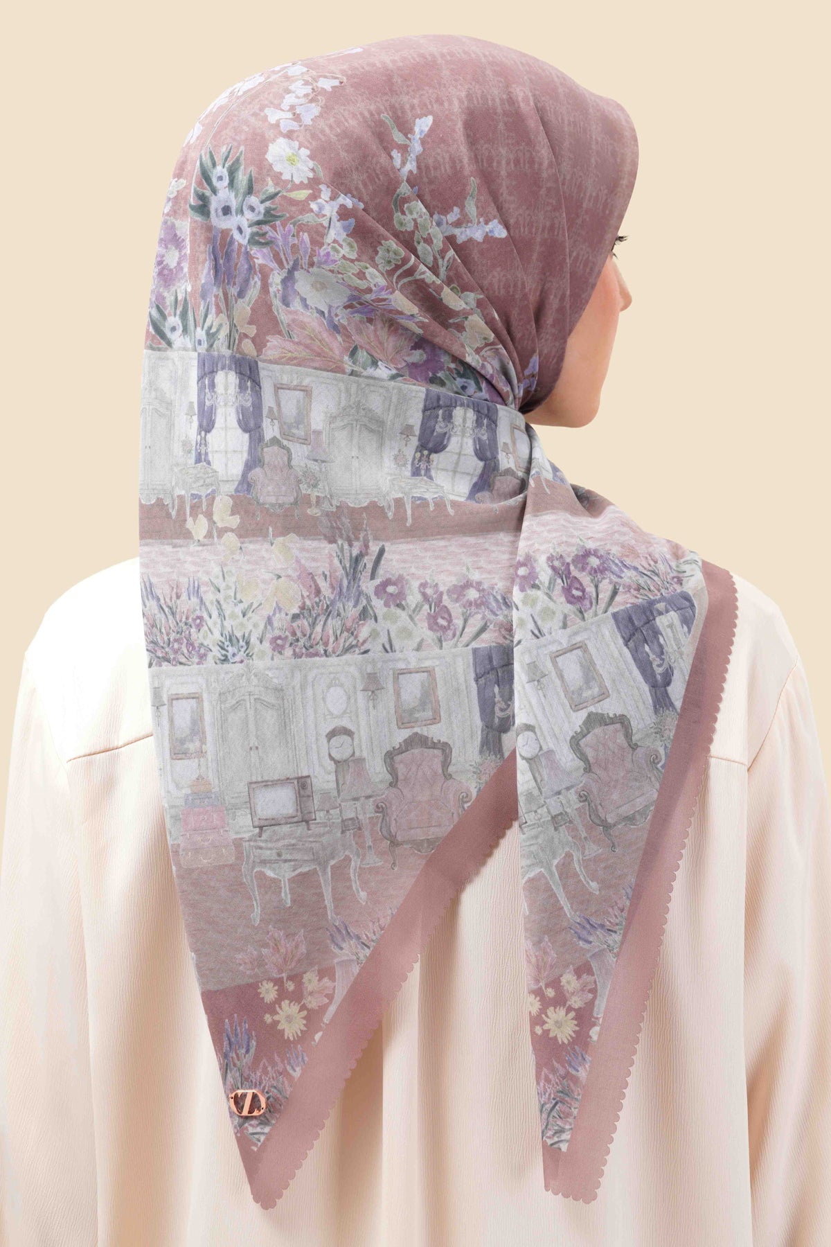 The Galleries Scarf takes you on a quiet walk through a botanical art gallery, where classic architecture meets blooming wildflowers. Every part of the print feels like a canvas, blending structure and softness in a way that feels effortless. When worn, it gives the impression of carrying a small exhibition with you—subtle, elegant, and full of stories waiting to unfold. It’s a piece that brings an artistic touch to your everyday look.