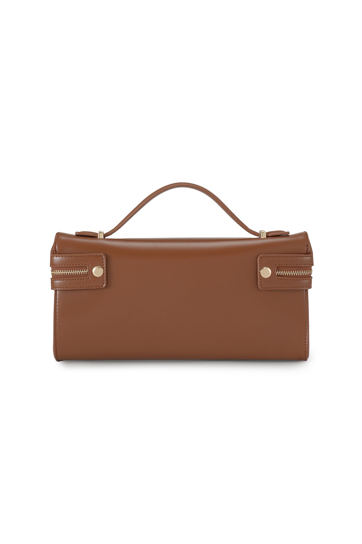 Sleek and timeless, the Alva Clutch features a clean structured silhouette with gold-tone hardware and a subtle signature logo. Designed with a top handle and secure zip closure, it fits your daily essentials while keeping your look polished. Perfect for both day and evening wear.