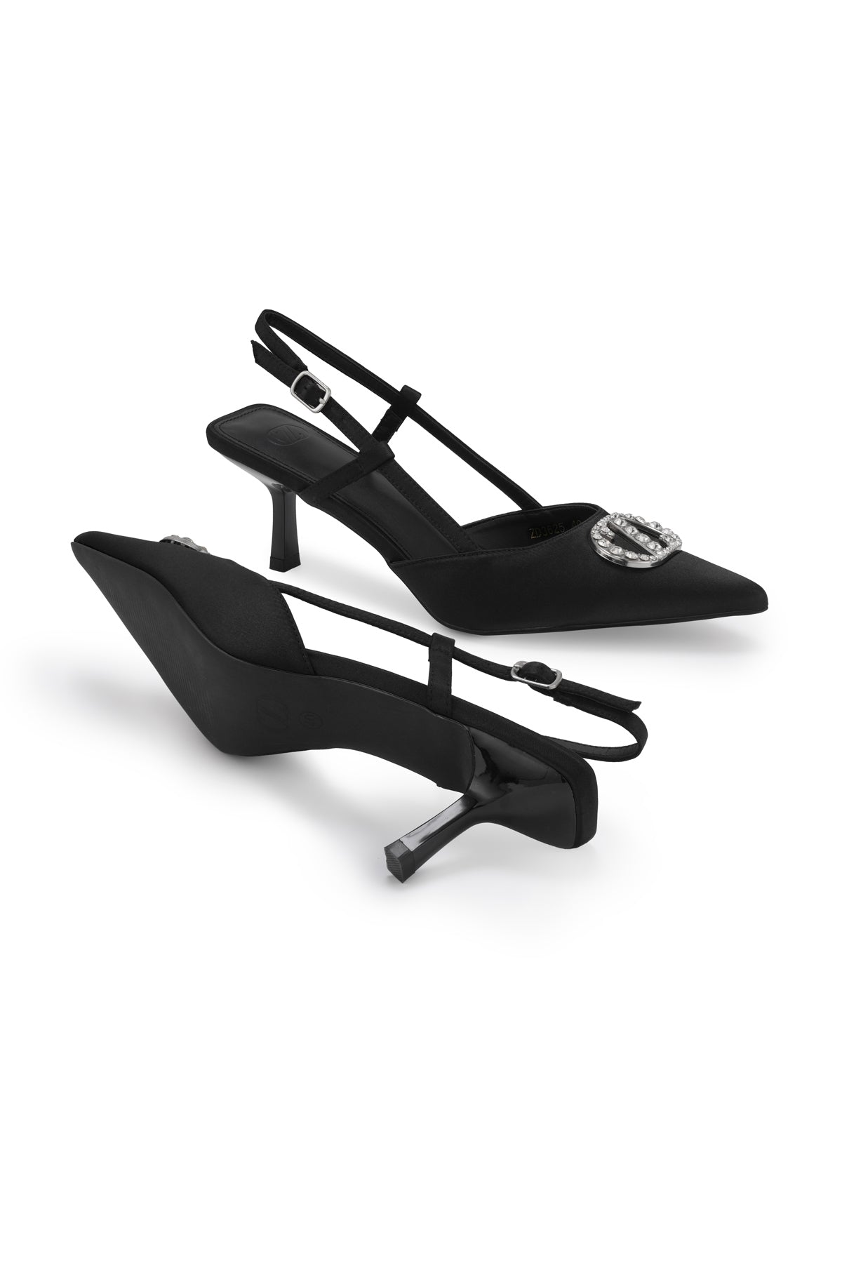 Meet Lily Slingback Pump, a refined silhouette designed to elevate your everyday and occasion wear. Crafted with a smooth satin-finish material, this pair brings a soft sheen that feels elegant yet understated. The pointed toe creates a sleek profile, while the slingback strap offers a secure and graceful fit. Finished with a crystal buckle detail, Lily adds just the right touch of statement without feeling overdone. Effortlessly polished and easy to style, Lily is made for moments when you want to look put-together with minimal effort.